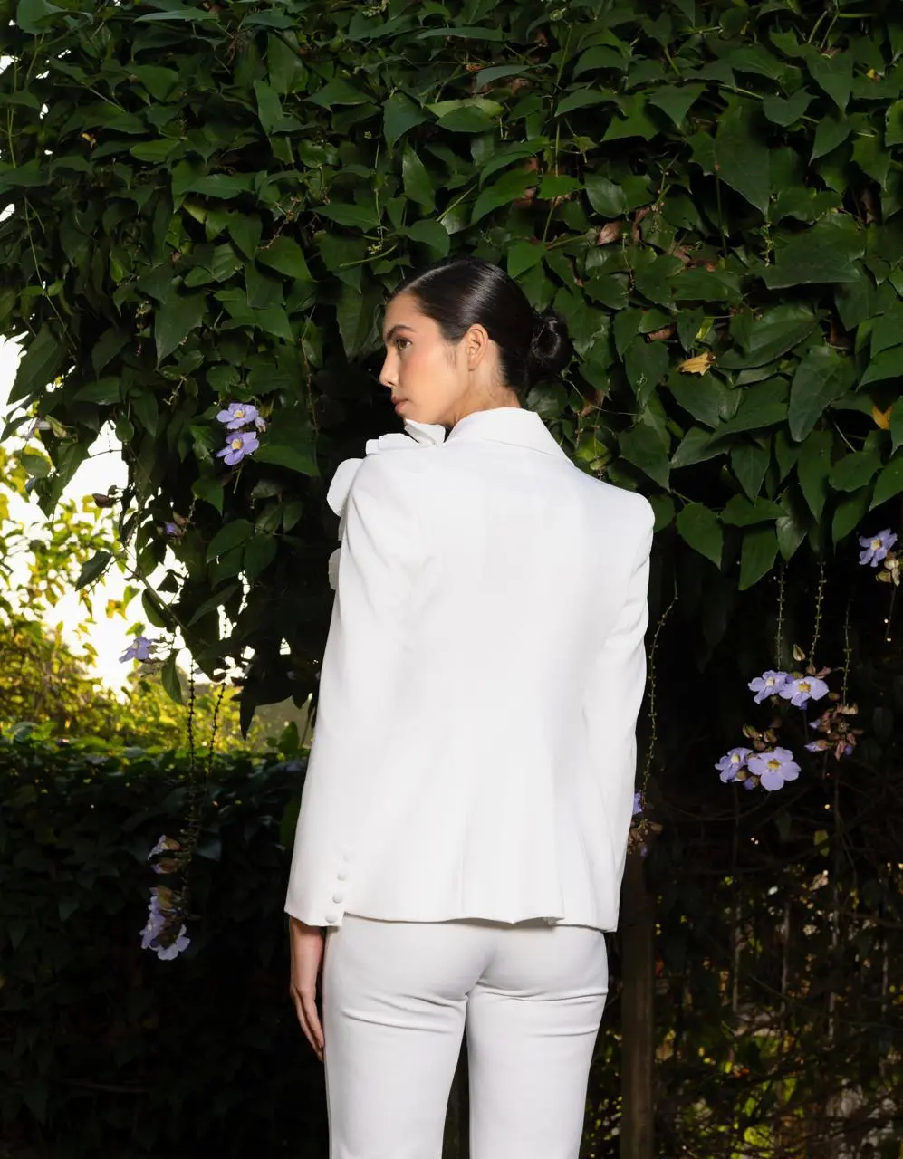 O poder do branco com um charme extra. Perfeito para eventos especiais ou para dar um toque de glamour ao seu dia a dia, este blazer é versátil e inesquecível.